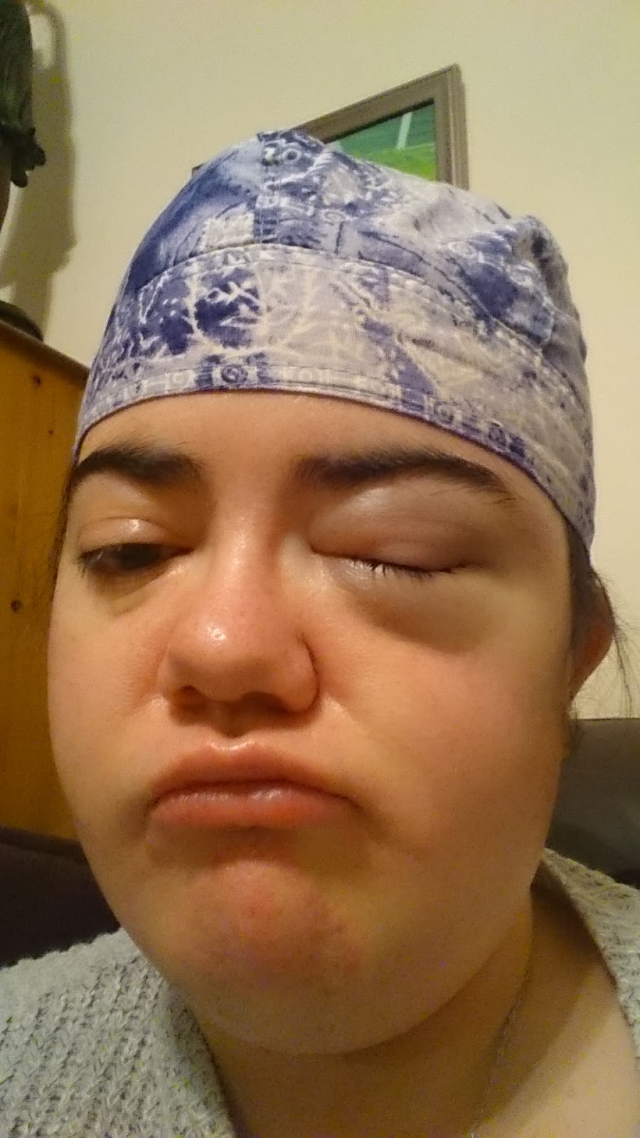 I was scared to sleep, fearing I wouldn't wake up, I had panic attacked where I couldn't breath and would burst into tears at random times and even though I was told to rest, it was impossible. I was prescribed antidepressants for health anxiety and tried to focus on the steps between the surgery and the results of the biopsy but it was difficult. I was still struggling to move about by myself, my head was swollen and sore and my words were muddled. I found it hard to even watch TV thanks to the stigma the tumour had caused in my eye and the swelling not allowing me to wear my glasses for too long!